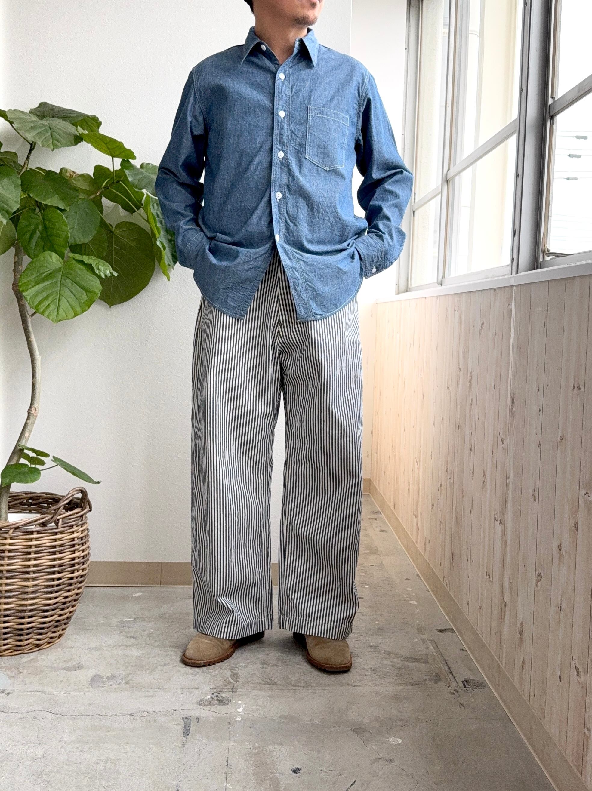 ordinary fits / オーディナリーフィッツ / BELL PANTS / ベルパンツ / ヒッコリーパンツ / ワイドパンツ / ワークパンツ / ストライプパンツ / 日本製パンツ / メンズワイドパンツ / ユニセックス / カジュアル / ワークスタイル