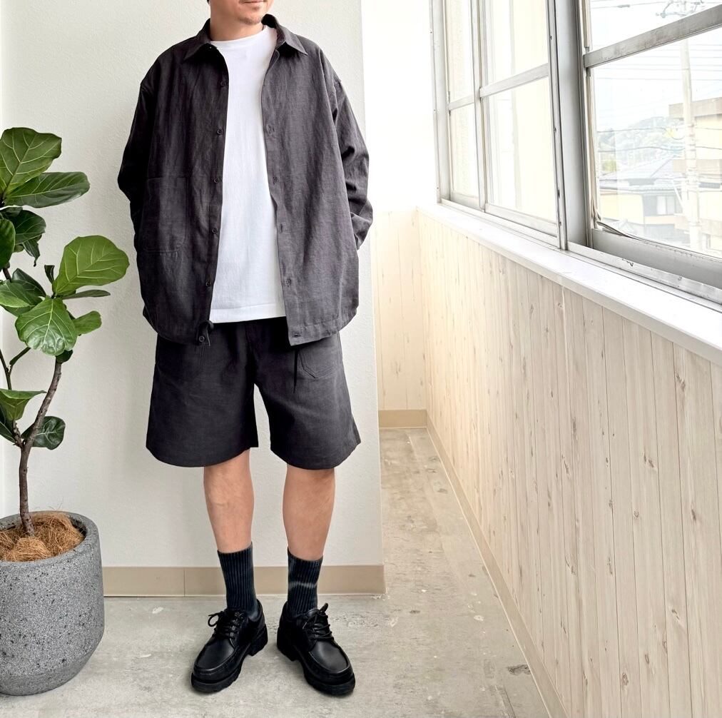 シャツとアウターの中間着としてデザインした麻綿のシャツジャケット。