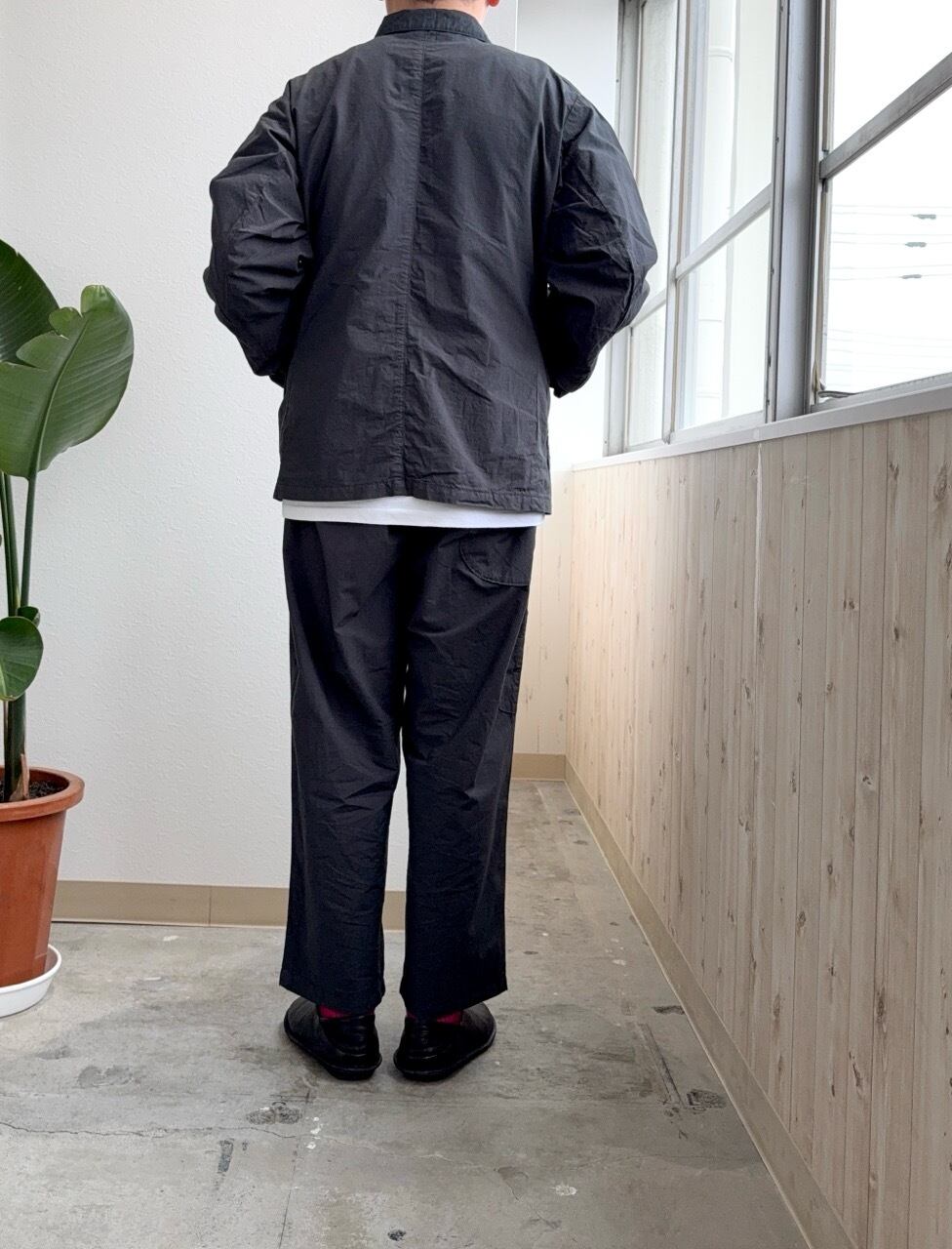 程よくゆとりのあるシルエットに、ワーク由来のディテールを落とし込みながらも、どこか上品なバランスに仕上げられています。