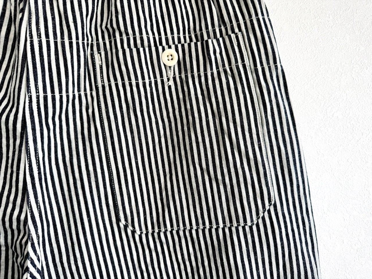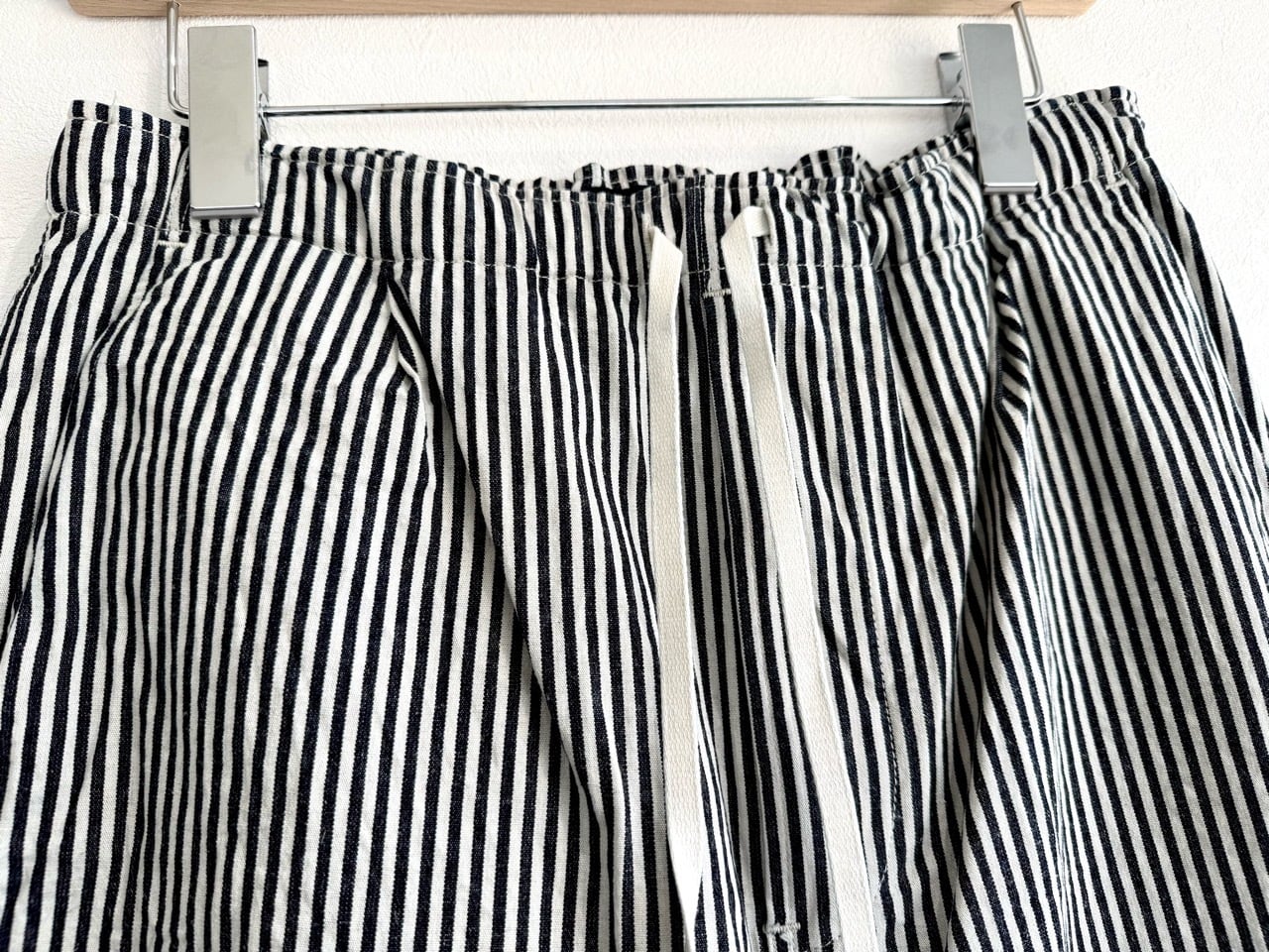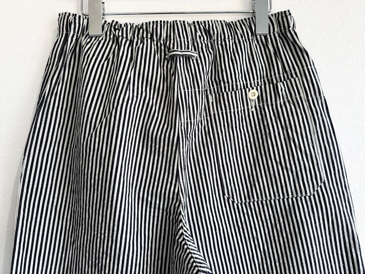 フロントはジップフライ、ウエストにはぐるりゴムを入れて綿テープを使用した