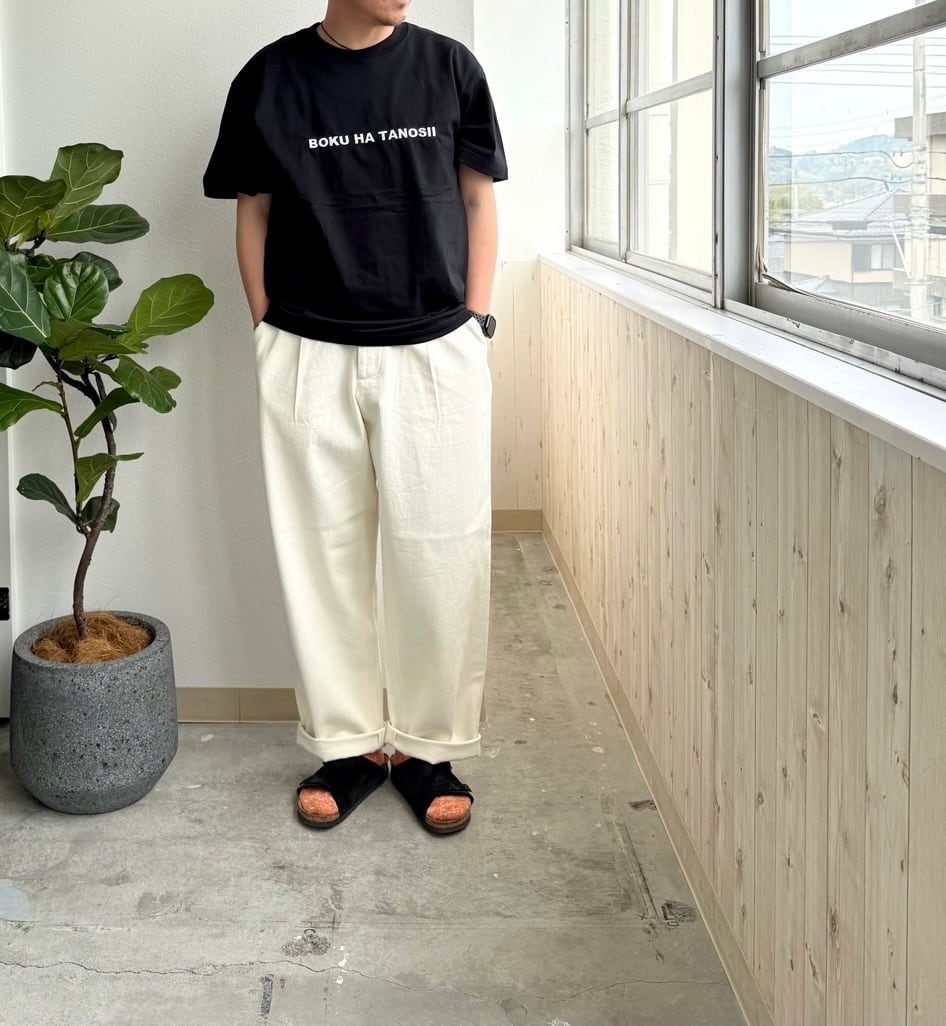 ゆとりのあるワイドシルエットに、緩やかなテーパードを効かせることで、リラックス感がありながらもすっきりとした印象に仕上げられています。