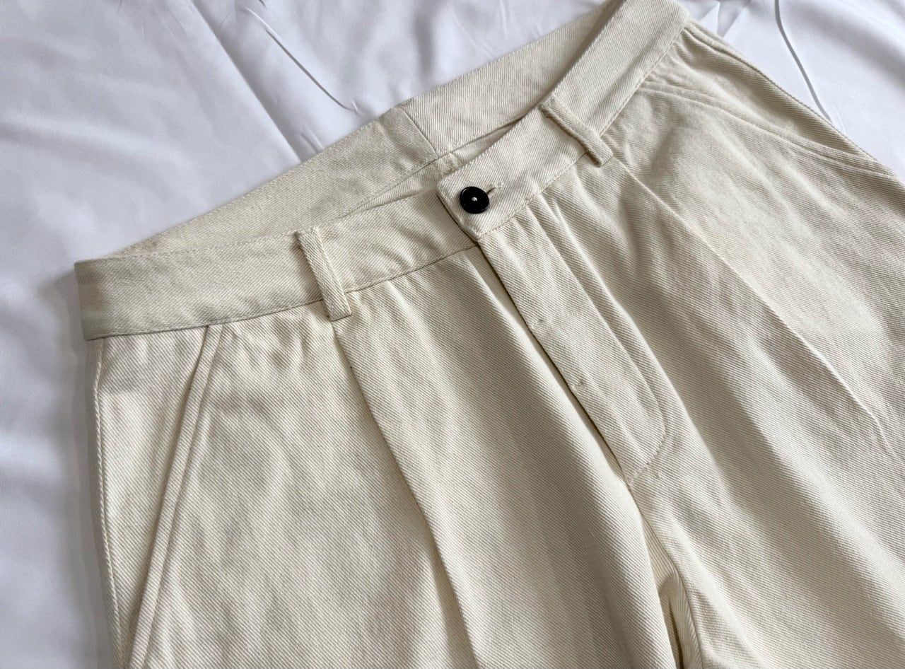 ナチュラルな風合いのスラブドリル生地を使用し、程よい表情と上品さを兼ね備えた一本。